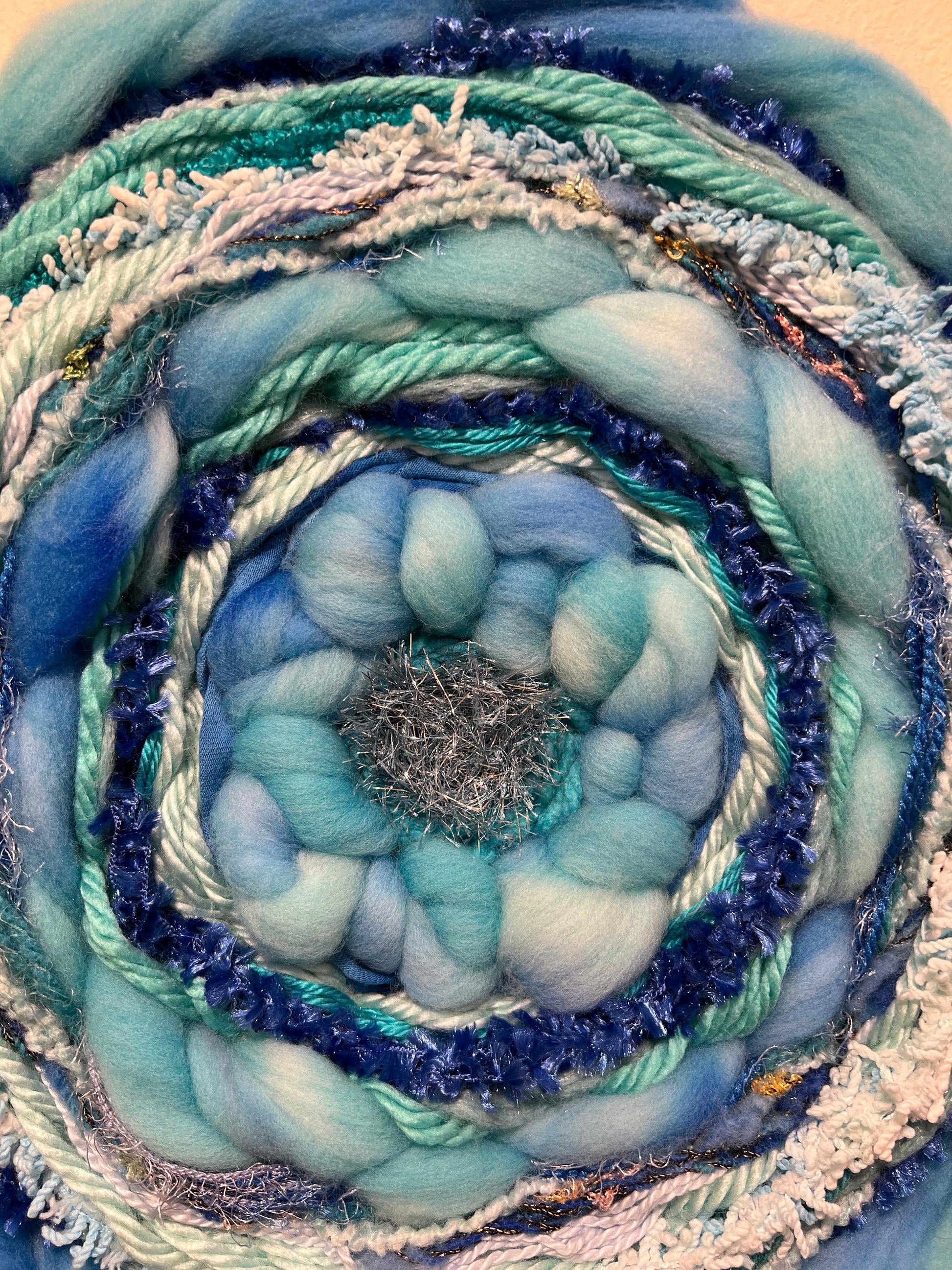 14 inch weaving with aqua, teal, and blue